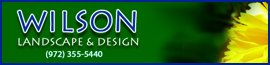 Wilson Landscape Design![]() P.O. Box 292698 Lewisville TX 75029 Phone: (972) 355-5440 Fax:(972) 353-4128 www.wilsonlandscapedesign.com Wilson Landscape Design is a full service Commercial and Residential landscape, irrigation and design corporation. We have been serving the Dallas Ft. Worth Metroplex since 1987. We pride ourselves in providing our customers with excellent workmanship, superior service and quality materials that meet the highest of horticultural standards. At Wilson Landscape Design, we know your home is one of your most valuable investments and we want to help you make it beautiful and ensure its lasting value. In addition to using only high-quality materials and following strict guidelines for our services, we guarantee our workmanship for 1 full year. CALL TODAY FOR YOUR FREE ESTIMATE! TCEQ RN103743670 landscape irrigation license Irrigator's License #7547 by Texas Irrigators Advisory Council
